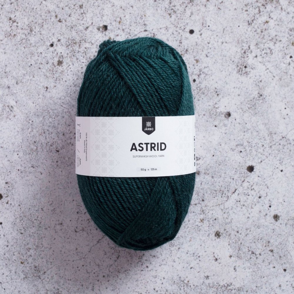 Astrid 50g - Forrest green (80423)Lätt att jobba med och varm att ha på sig. Lite stickig, men det är väntat med ull.