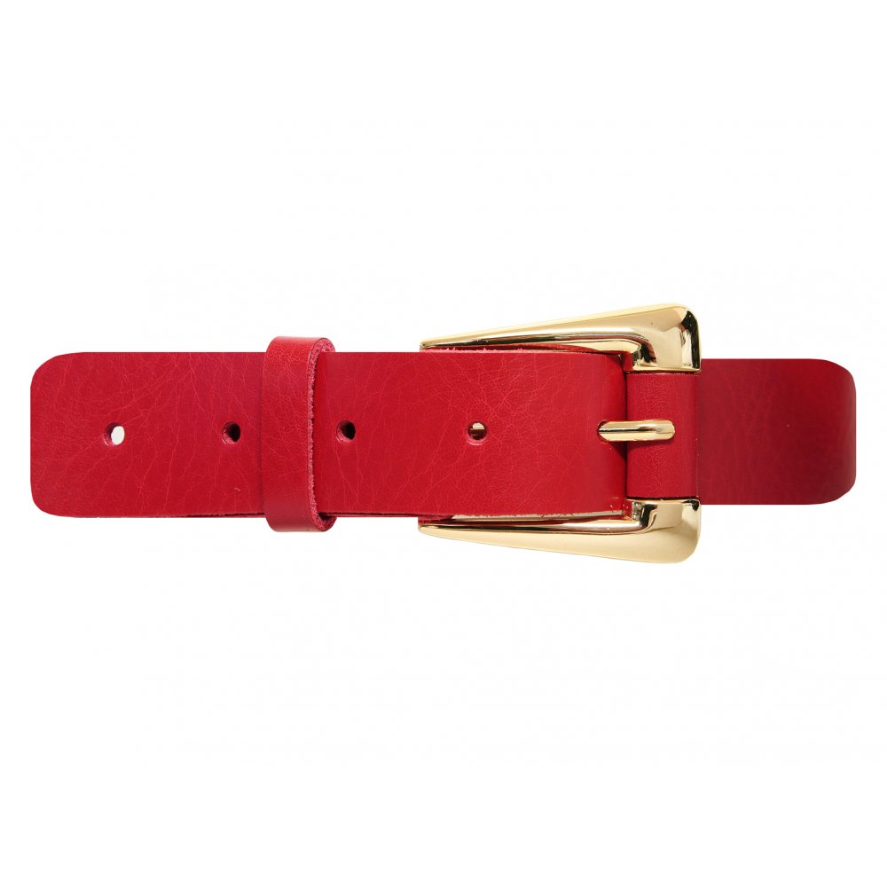 30mm damskärp i kalvläder med guldfärgat spänne med läderdetalj och slät läderrem.
