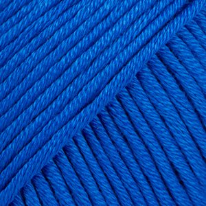 Fin marinblå färg, stämmer bra med verligheten. Mjukt och skönt att virka i.