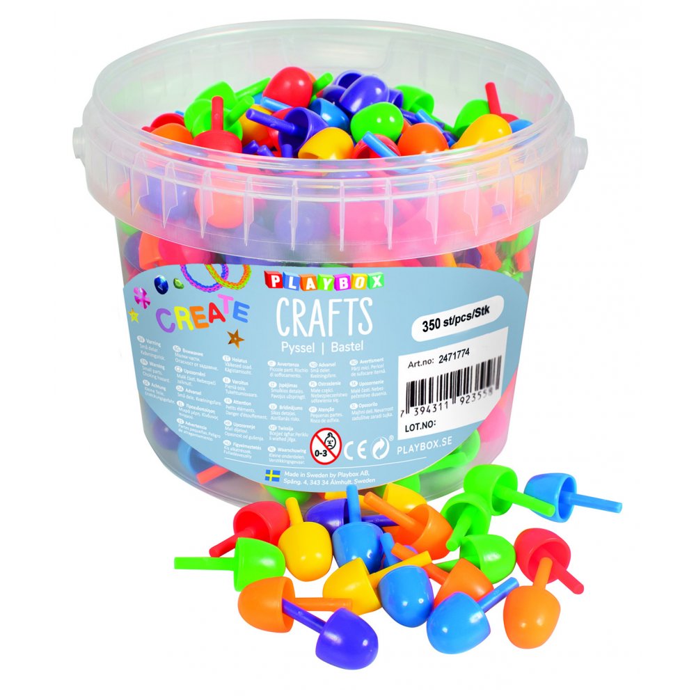 Färgmosaik med mellanstora piggar, förpackade i en praktisk hink. Använd din fantasi för att göra olika mönster, bara fantasin sätter gränser!