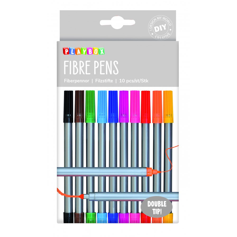 10 st fiberpennor med dubbelspets i 10 olika färger.