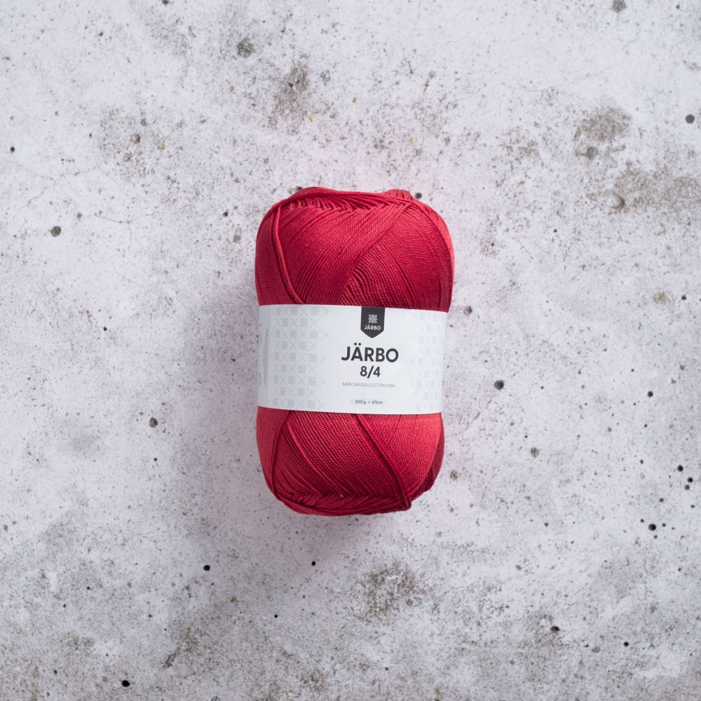 Järbo 8/4 garn 200g - Julröd (49046)Skönt garn att virka med, fin lyster och jättefin julröd färg. Blir snygga tallriksunderlägg till dotterns önskan.