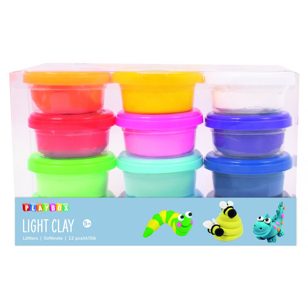 Lättlera är perfekt lera för barn, med 12 fina användbara färger. Lufttorkande lättlera är väldigt härlig att använda och att göra figurer av. OBS! Lättlera kan färga av sig men går att tvätta bort från de flesta ytor. Tänk dock på att skydda kläder och möbler när du använder lättlera.