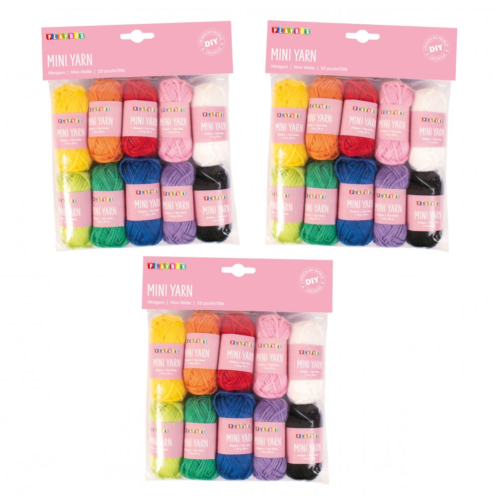 Mininystan i tio olika färger. Akrylgarnet är av hög kvalitet och har många praktiska egenskaper, kan med fördel användas till stickning, virkning, broderi och pysseltillverkning. Akrylgarnet är fritt från AZO-färger och formaldehyd.
