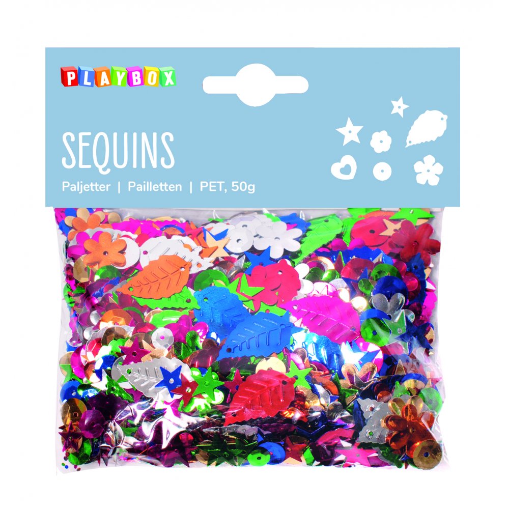 Paljetter med många olika motiv och i ett stort urval av färger. Använd paljetterna för pyssel eller dekoration - klistra på vykort, paket, teckningar eller dekorera bord vid festligheter.