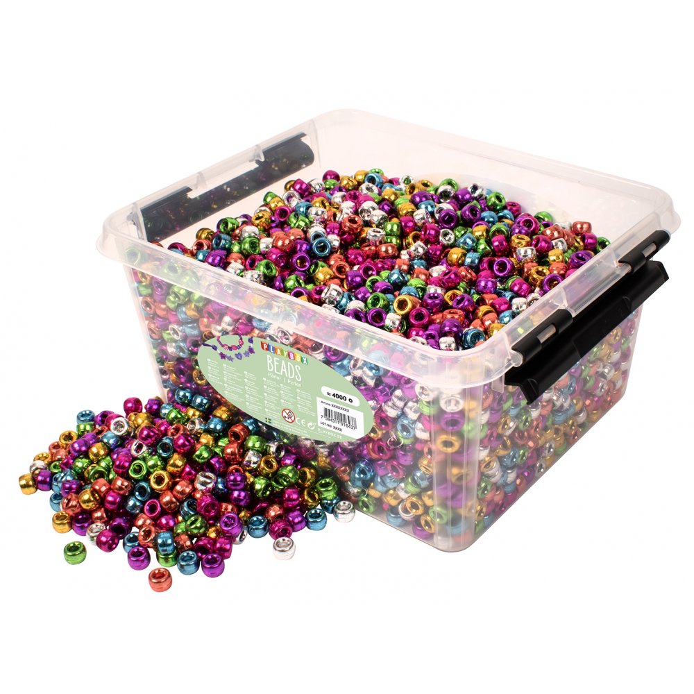 Runda pärlor i glänsande metallicfärger. Skapa blänkande armband och halsband eller varför inte en fin dekoration till nyckelringen. Låt fantasin flöda och kombinera gärna med pärlor i andra färger och former i oändliga variationer. Den genomskinliga backen förenklar förvaring och minimerar spillande.