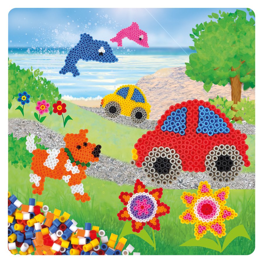 Ett pärlset med plattor och pärlor för hund, bild, fisk och blomma. Innehåller 2000 pärlor.