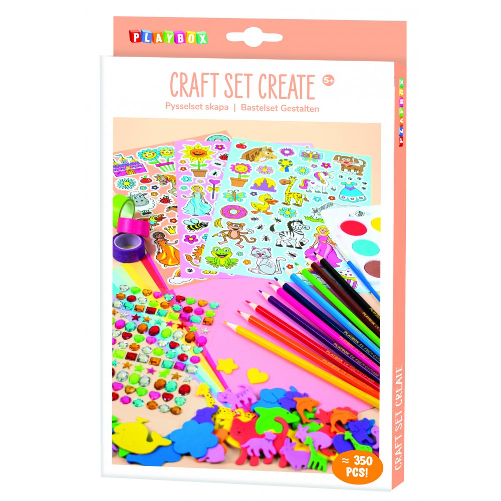 Ett pysselset som innehåller allt som behövs för att komma i gång med att måla och skapa. Gör egna kort, pynta med klistermärken och kristallstenar. Måla en tecknad värld och dekorera med mjuka djur i dekorgummi.