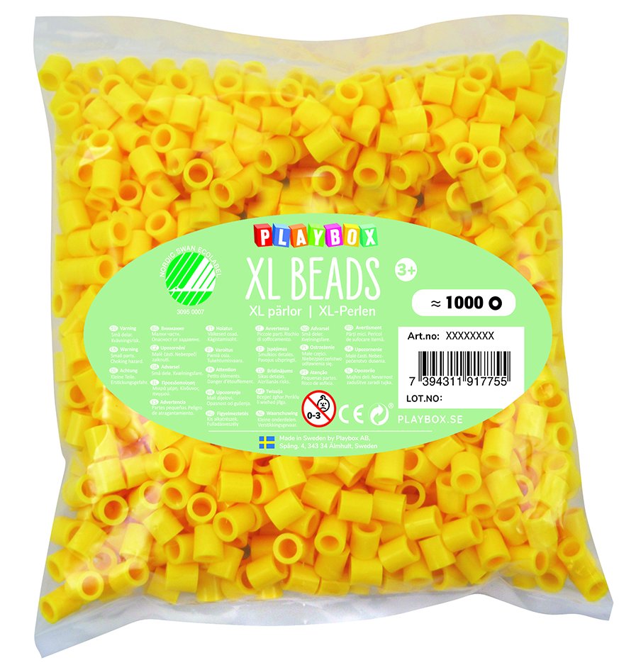 Stora Svanenmärkta rörpärlor för pärlplattor, gula. Storleken på rörpärlorna gör det lätt att pyssla och lägga pärlplattor. Lägg i motiv eller olika mönster på pärlplattor, trä på tråd eller använd till dekoration av olika slag. Vi rekommenderar våra pärlplattor XL till.
