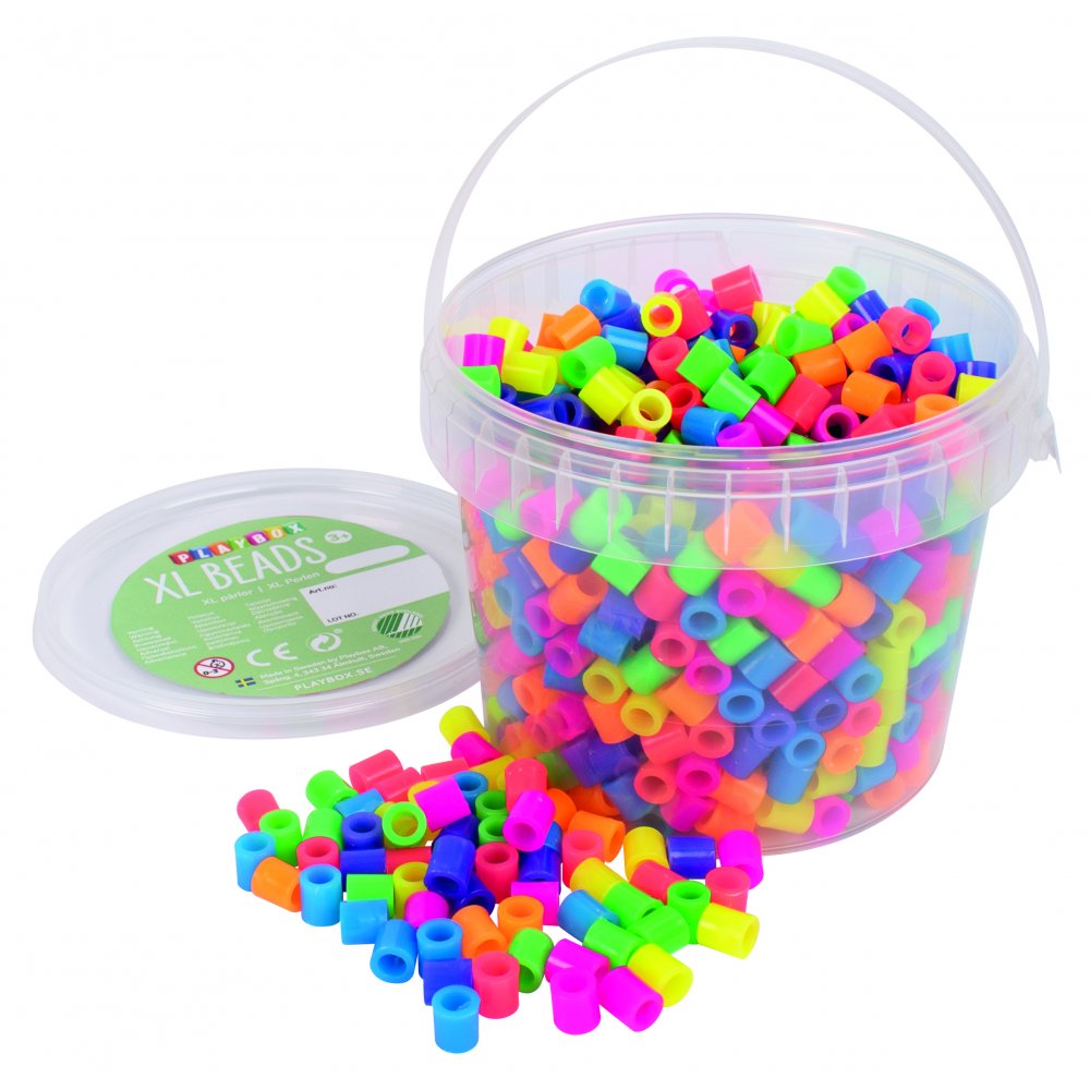 Stora pärlor till pärlplattor, i fina neonfärger. Storleken på pärlorna gör det lätt att pyssla och pärla pärlplattor. Lägg rörpärlorna i olika mönster på pärlplattor, trä på tråd eller använd till dekoration av olika slag.