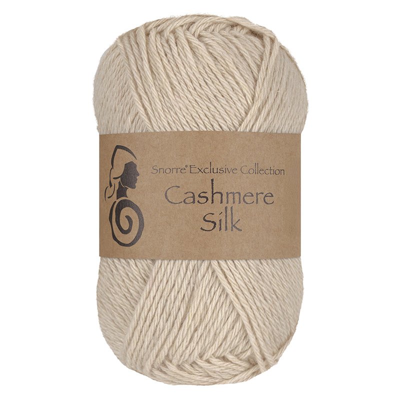 Cashmere Silk från Snorre Exclusive Collection är ett exklusivt garn tillverkat av 70% kashmir och 30% silke, spunnet av 100% återvunna fibrer. Garnet passar för stickning av lätta och eleganta plagg samt accessoarer.