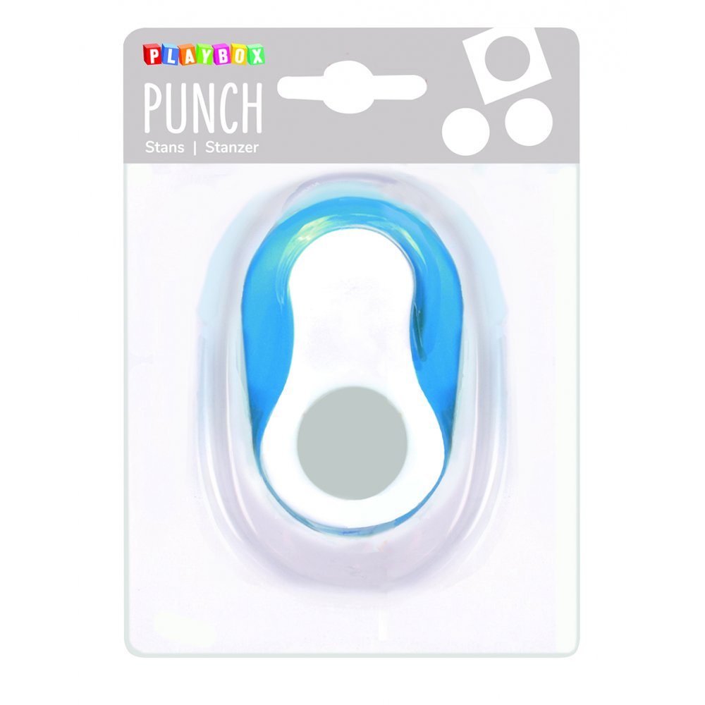 Figurstans med motiv av en liten cirkel. De utstansade cirklarna kan användas till mycket, exempelvis dekoration av grattiskort, på namnskyltar eller till scrapbooking.