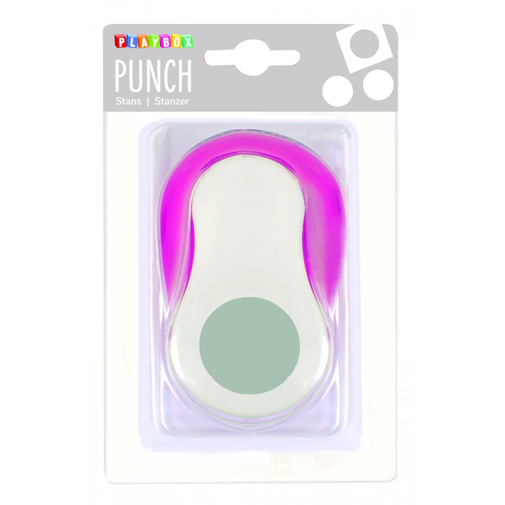 Figurstans med motiv av en mellanstor cirkel. De utstansade cirklarna kan användas till mycket, exempelvis dekoration av grattiskort, på namnskyltar eller till scrapbooking.