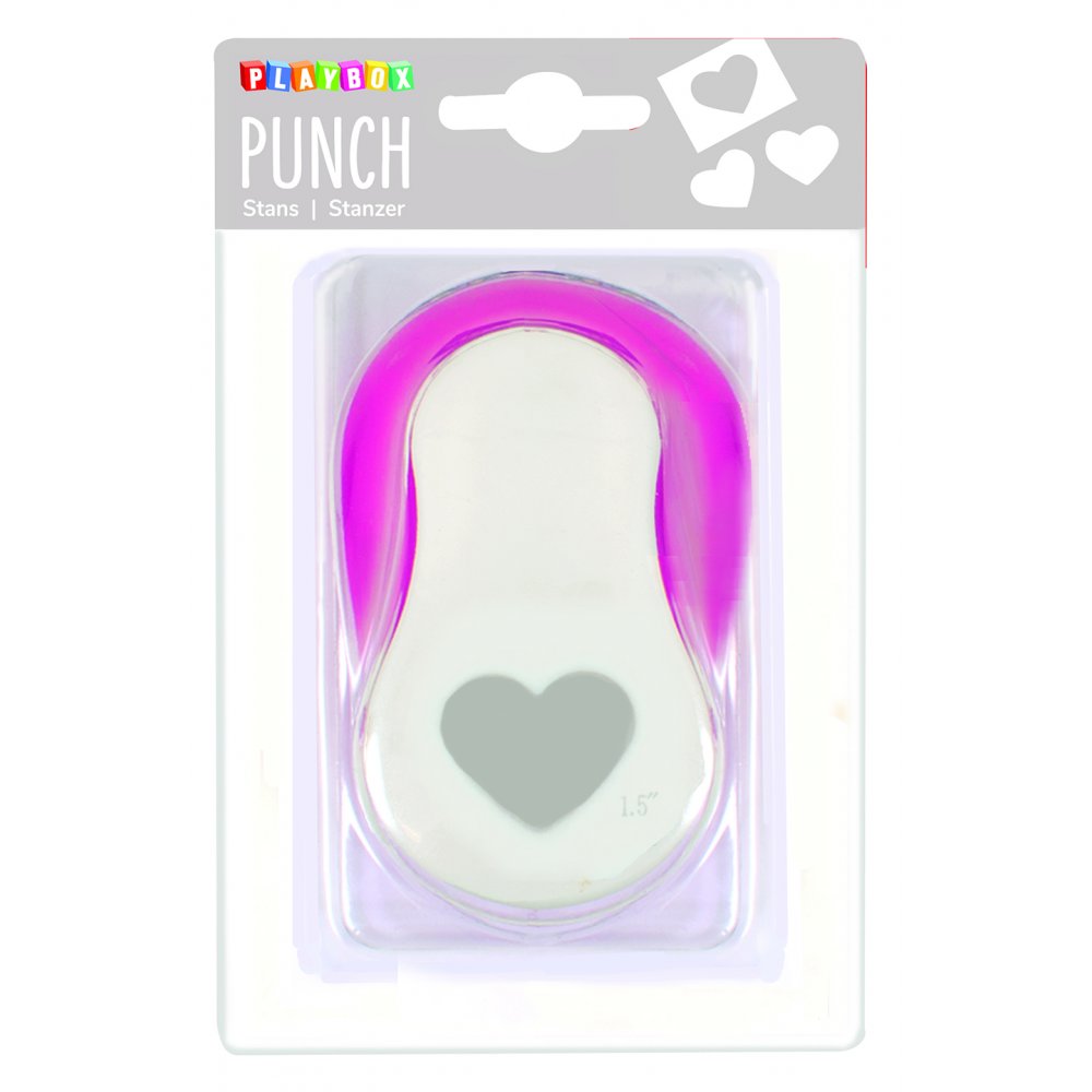 Figurstans med motiv av ett hjärta. De utstansade figurerna kan användas till mycket, exempelvis dekoration av grattiskort, på namnskyltar eller till scrapbooking.