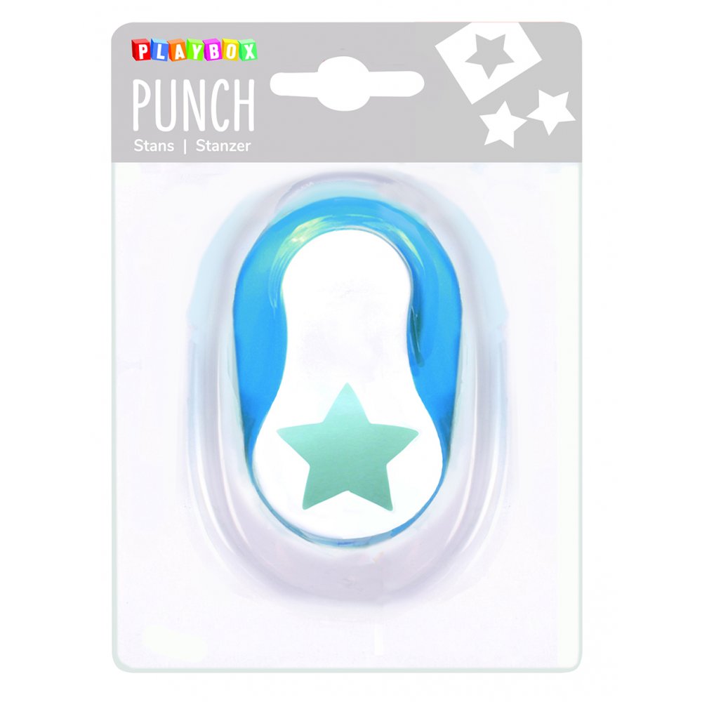 Figurstans med motiv av en stjärna. De utstansade figurerna kan användas till mycket, exempelvis dekoration av grattiskort, på namnskyltar eller till scrapbooking.
