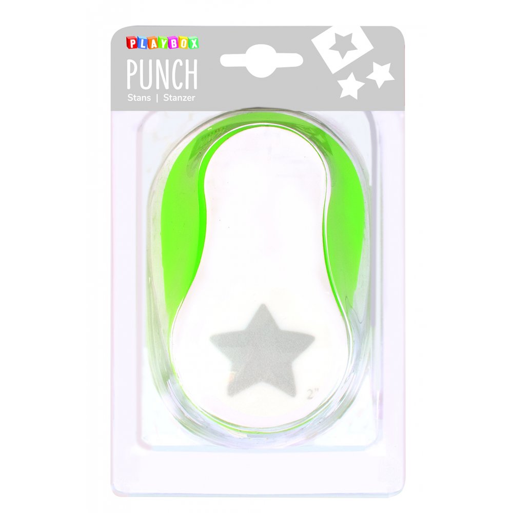 Figurstans med motiv av en stjärna. De utstansade figurerna kan användas till mycket, exempelvis dekoration av grattiskort, på namnskyltar eller till scrapbooking.