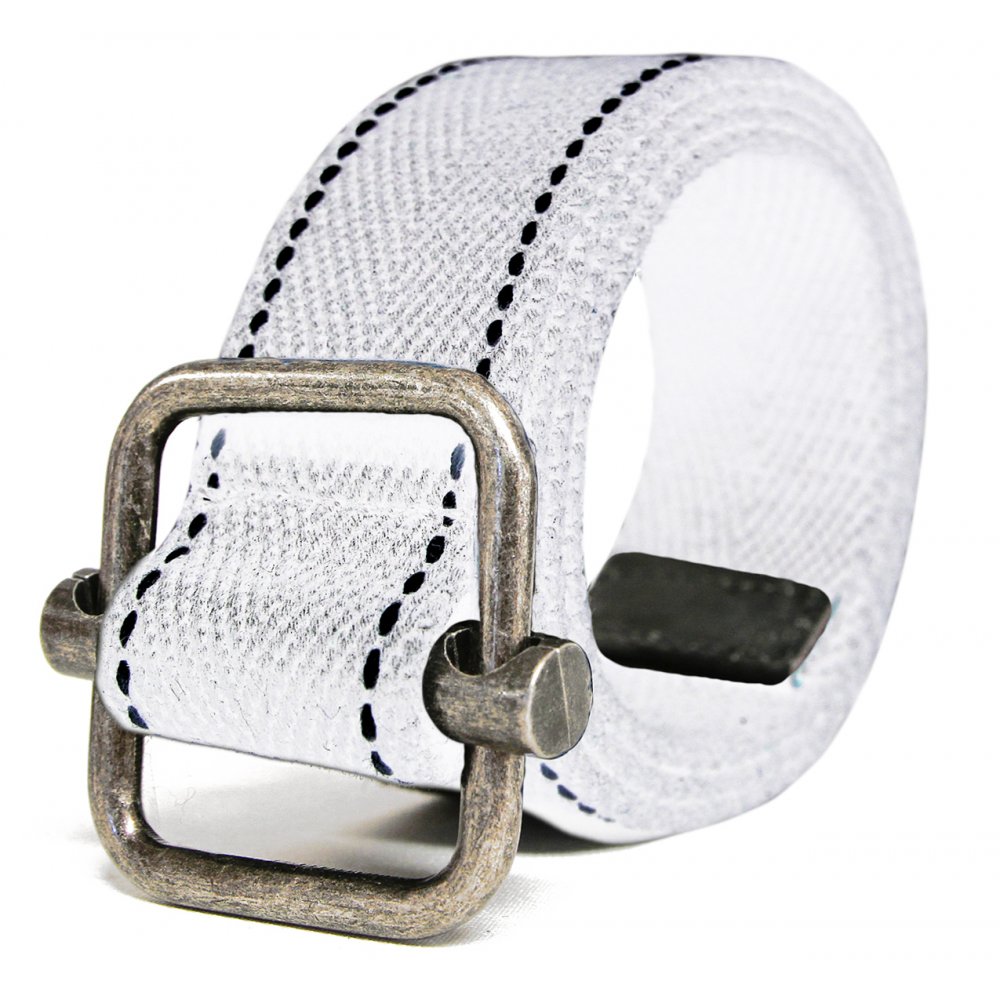 40mm bälte i textil. Modern design med mattborstat metallspänne och läderdetaljer.