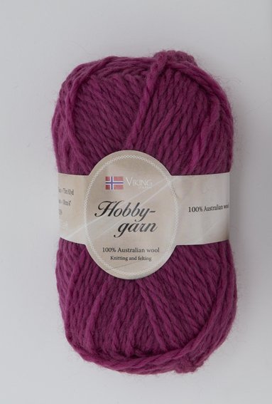 Viking garn Hobbygarn 50g - Cerise (965) (43492)Hobbygarnet är så bra! Roligt och lätt att sticka med. Fina färger att välja mellan. Lätt att tova i 40 grader i tvättmaskinen. Jag stickar nu det fjärde paret ulltofflor. Rekommenderar det varmt.
