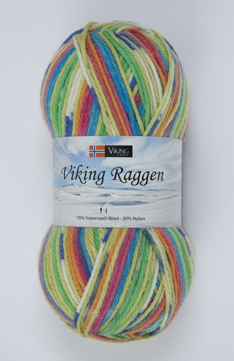 Viking garn Raggen 150g - Gul/blå/grön (735) (48124)