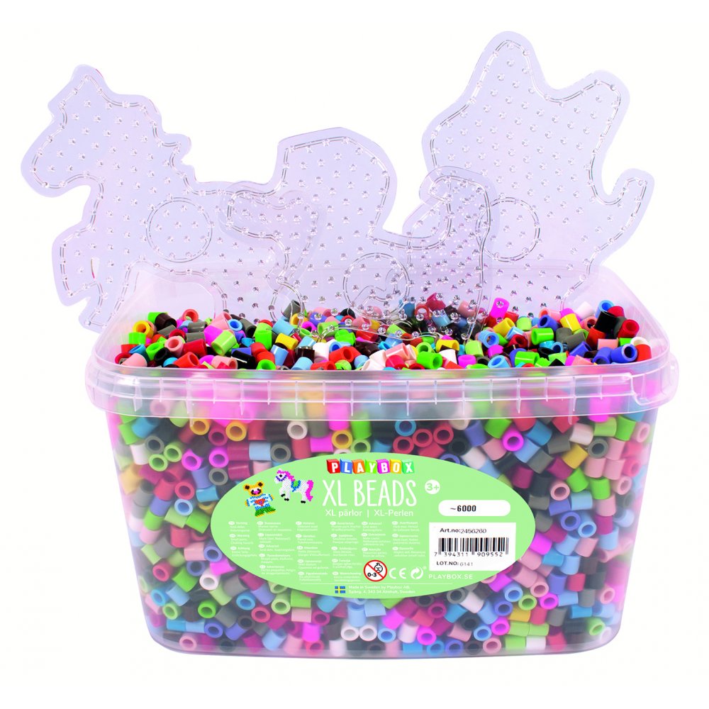Pärlset XL storlek med pärlor och plattor till anka, hare, kvadrat och elefant. Innehåller plattor och en back med 6000 pärlor.